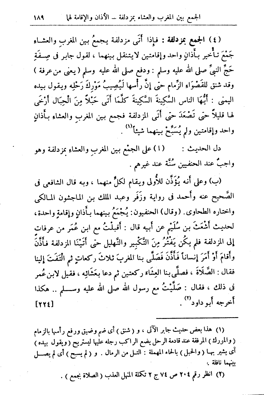 (¬2) انظر رقم 204 ص 74 ج 2 تكملة المنهل العذب (الصلاة بجمع).