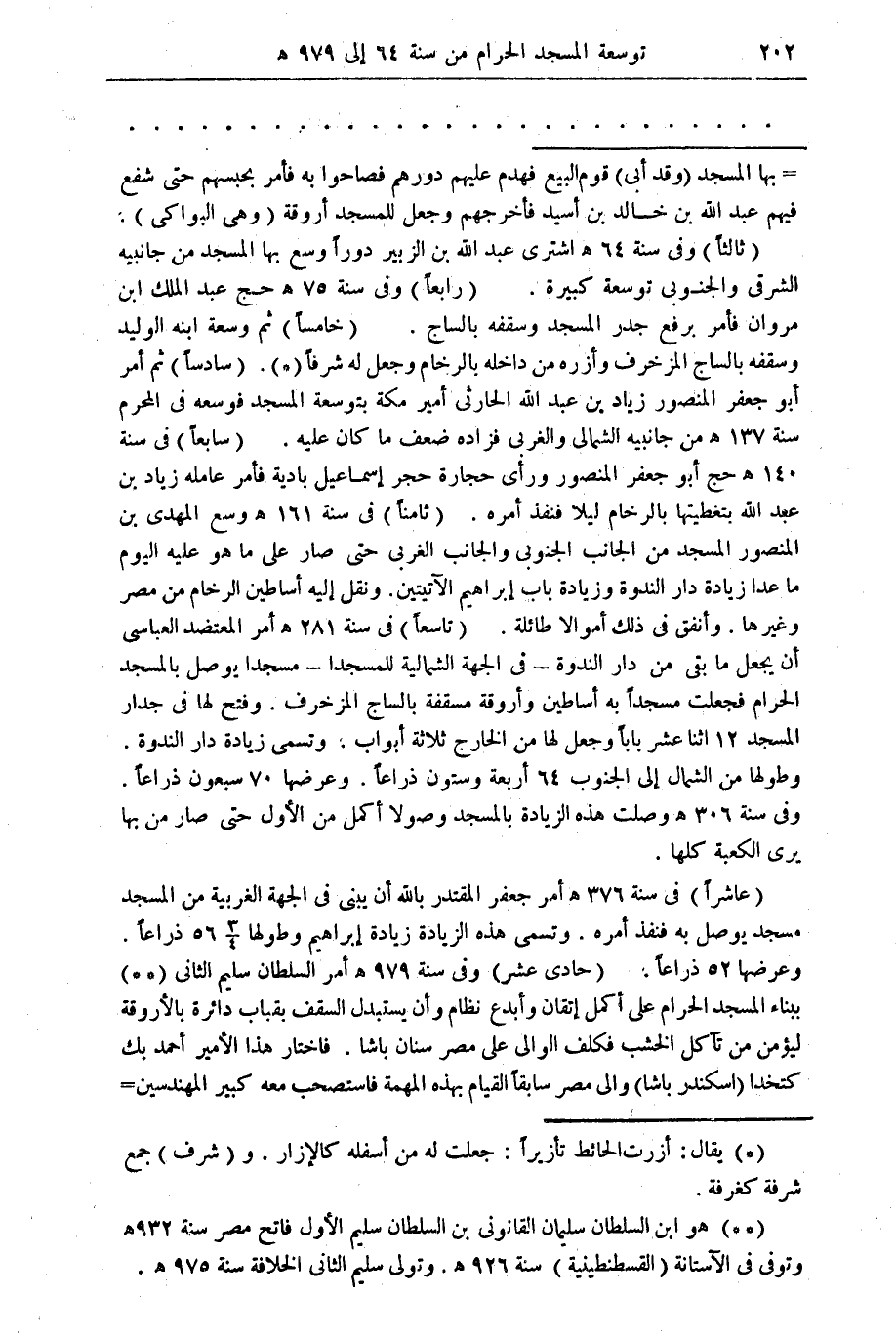 (حادي عشر) وفي سنة 979 هـ أمر السلطان سليم الثاني (**) ببناء المسجد الحرام. على أكمل إتقان وأبدع نظام وأن يستبدل السقف بقباب دائرة بالأروقة ليؤمن من تآكل الخشب فكلف الوالي على مصر سنان باشا. فاختار هذا الأمير أحمد بك كتخدا (اسكندر باشا) والي مصر سابقا القيام بهذه المهمة فاستصحب معه كبير المهندسين =