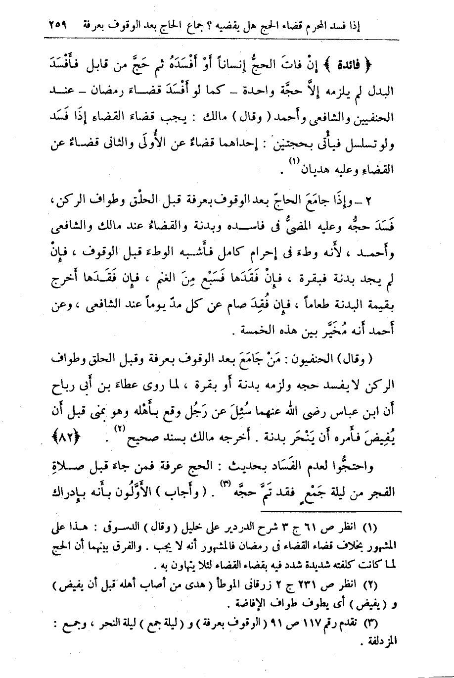 (¬2) أنظر ص 231 ج 2 زرقاني الموطأ (هدى من أصاب أهله قبل أن يفيض) و (يفيض) أي يطوف طواف الإفاضة.