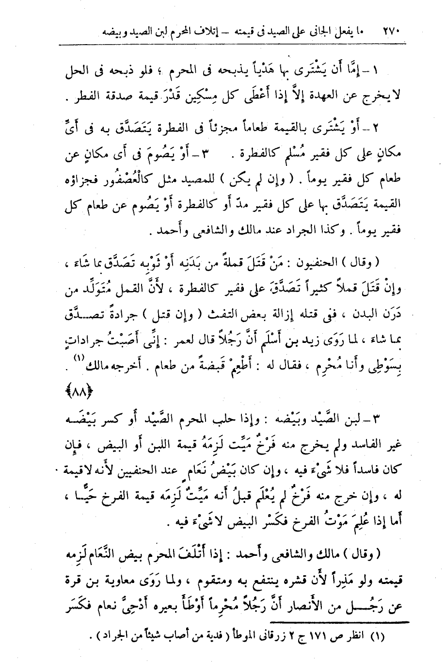 (¬1) أنظر ص 171 ج 2 زرقاني الموطأ (فدية من أصاب شيئا من الجراد).