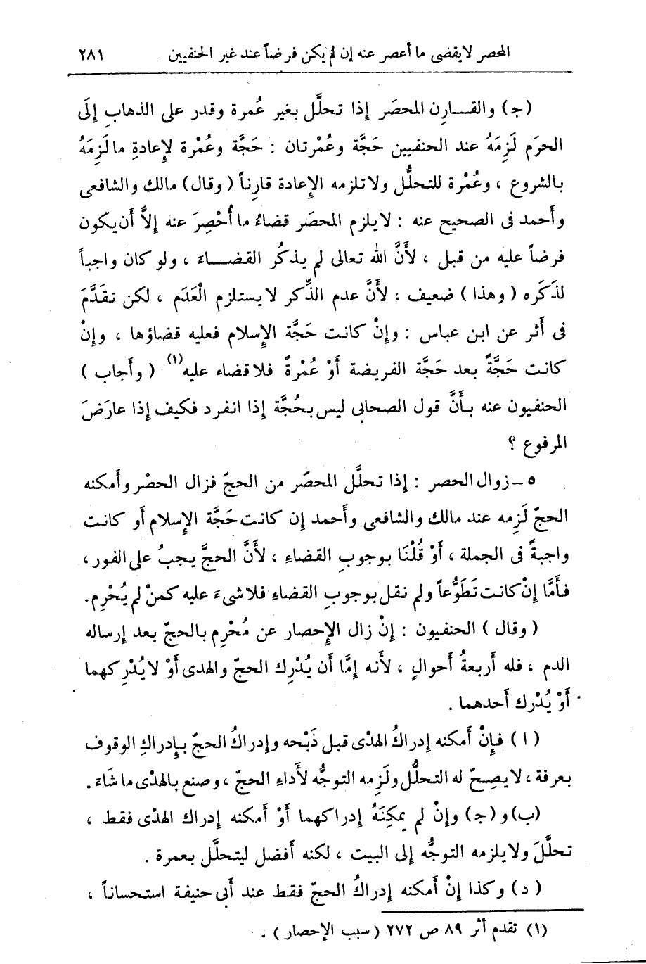 (¬1) تقدم أثر 89 ص 272 (سبب الإحصار).