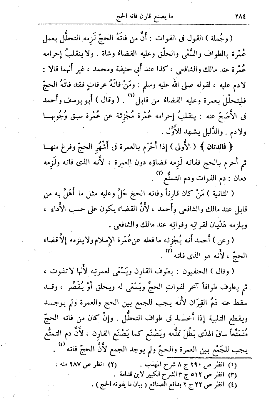 (¬4) أنظر ص 22 ج 2 بدائع الصنائع (بيان ما يفوته الحج).