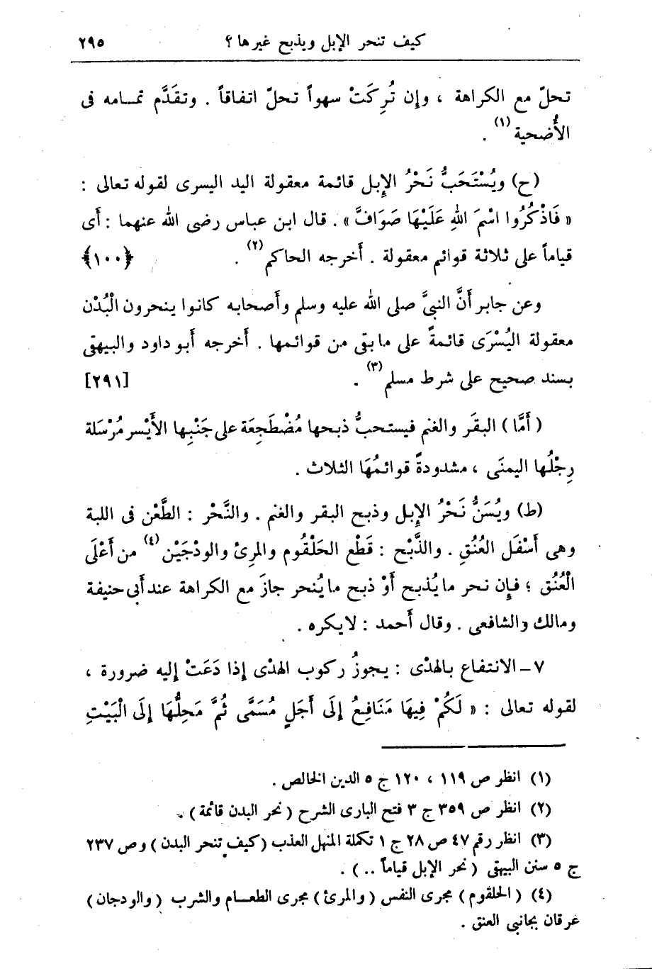 (¬3) أنظر رقم 47 ص 28 ج 1 تكملة المنهل العذب (كيف تنحر البدن) وص 237 ج 5 سنن البيهقي (نحر بالإبل قياما .. ).