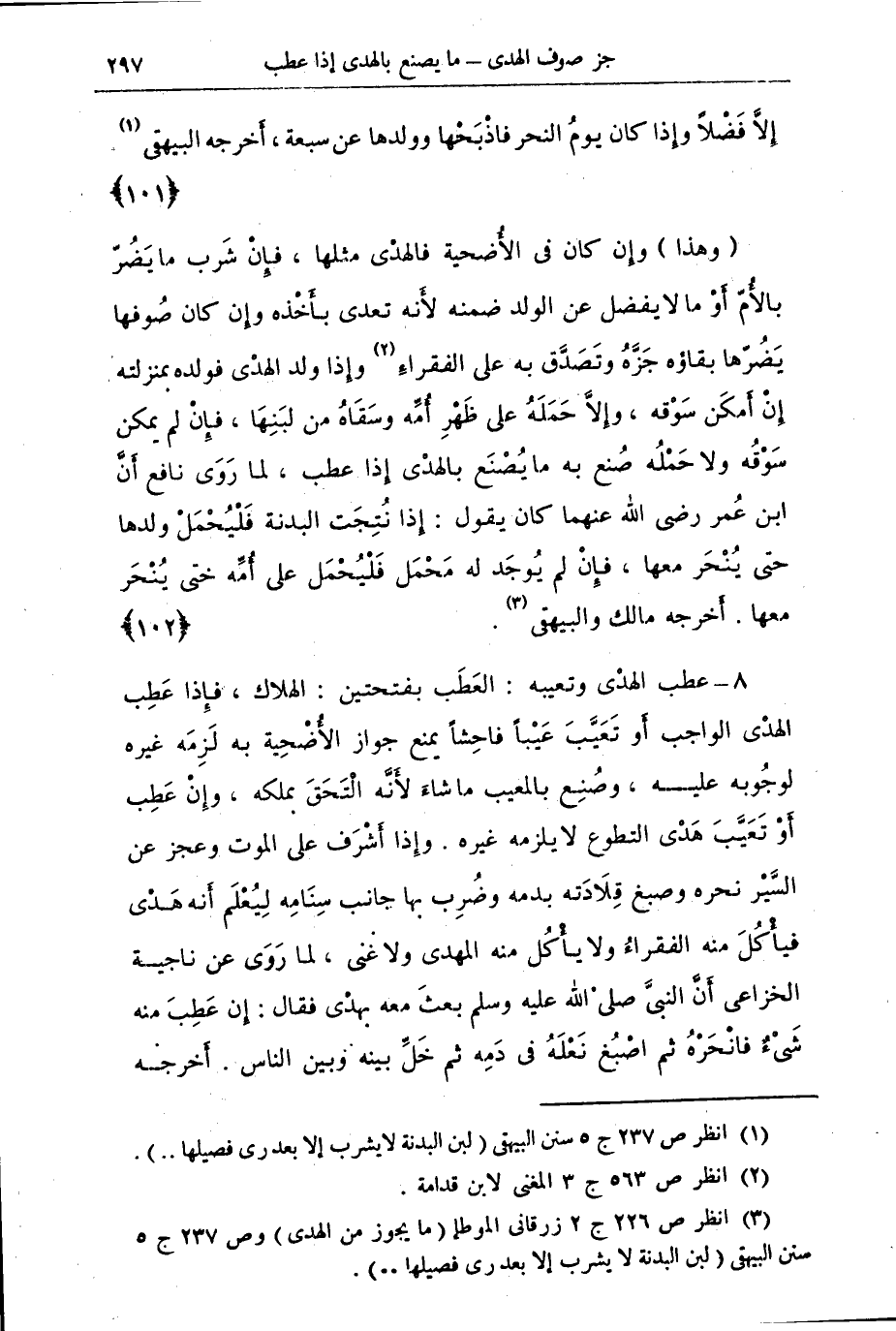 (¬3) أنظر ص 226 ج 2 زرقاني الموطأ (ما يجوز من الهدى) وص 237 ج 5 سنن البيهقي (لبن البدنة لا يشرب إلا بعد ري فصيلها .. ).