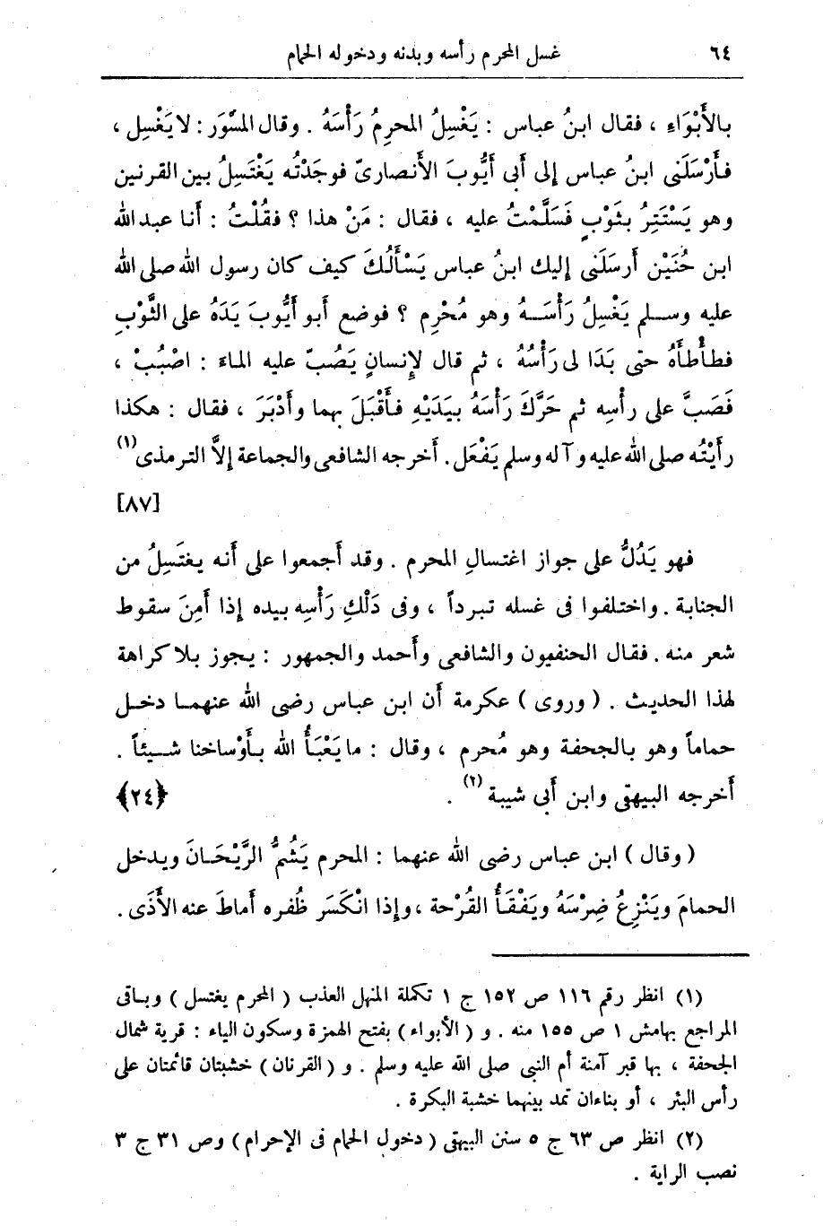 (¬2) ص 63 ج 5 سنن البيهقي. (دخول الحمام في الإحرام) وص 31 ج 3 نصب الراية.
