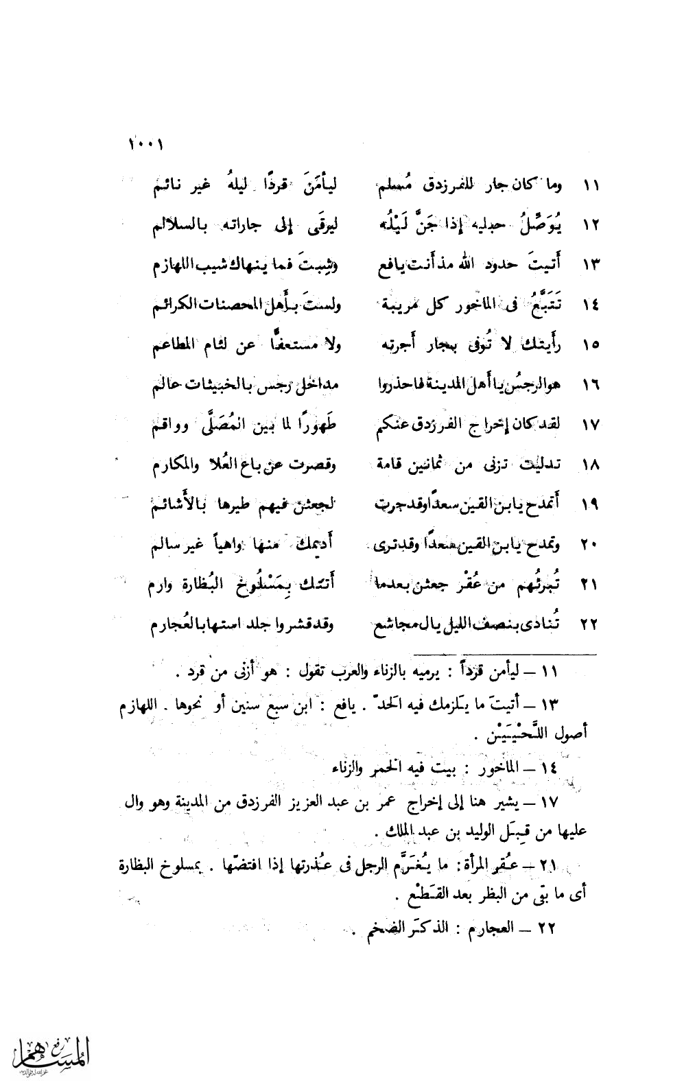 17 لقد كان إخراج الفرزدق عنكم ... طهورًا لما بين المصلَّى وواقم