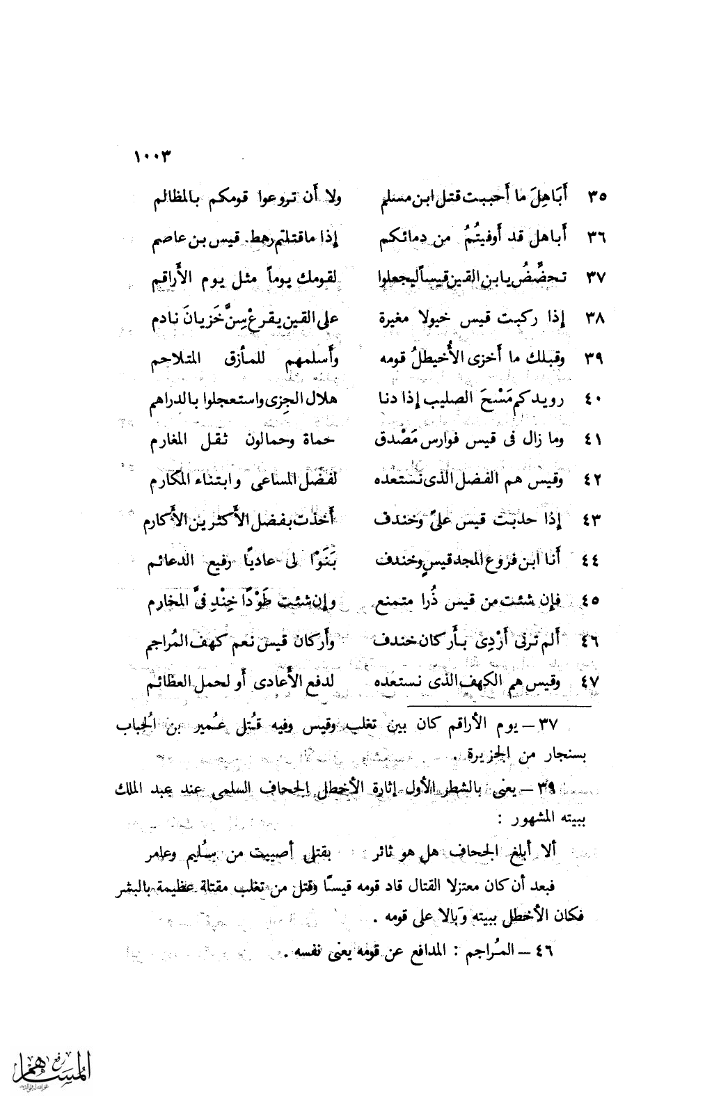 37 تحضِّض يابن القين قيسًا ليجعلوا ... لقومك يومًا مثل يوم الأراقم