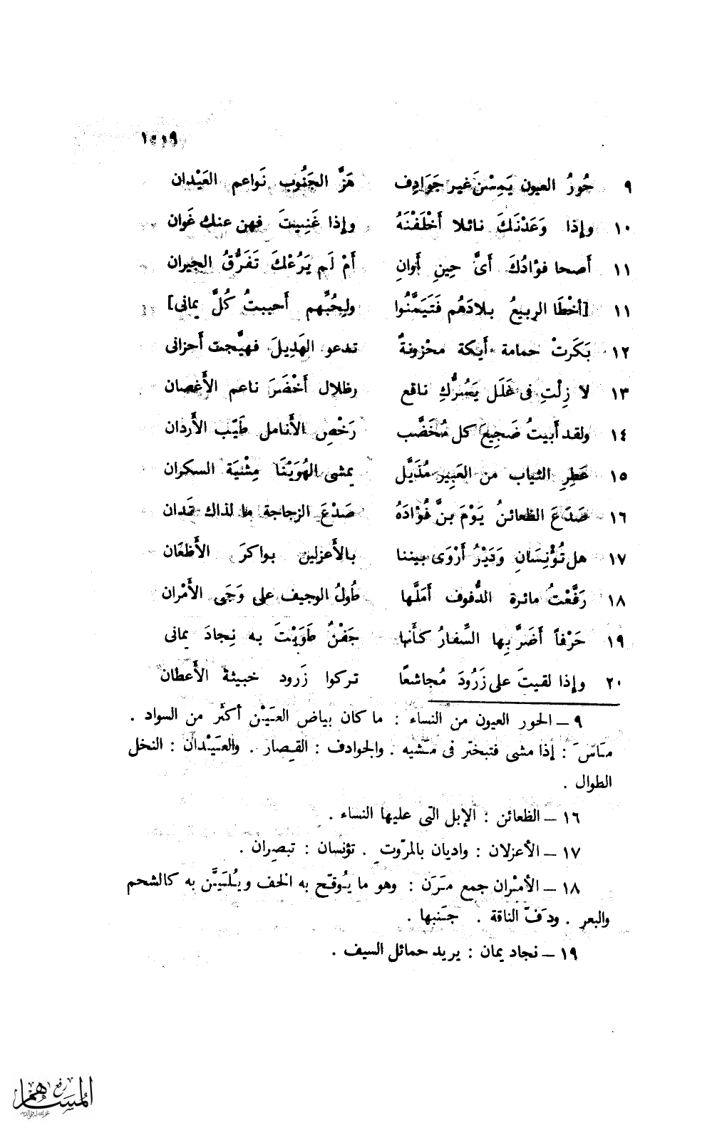 19 حرفًا أضرَّ بها السِّفار كأنها ... جفنٌ طويت به نجاد يمانى