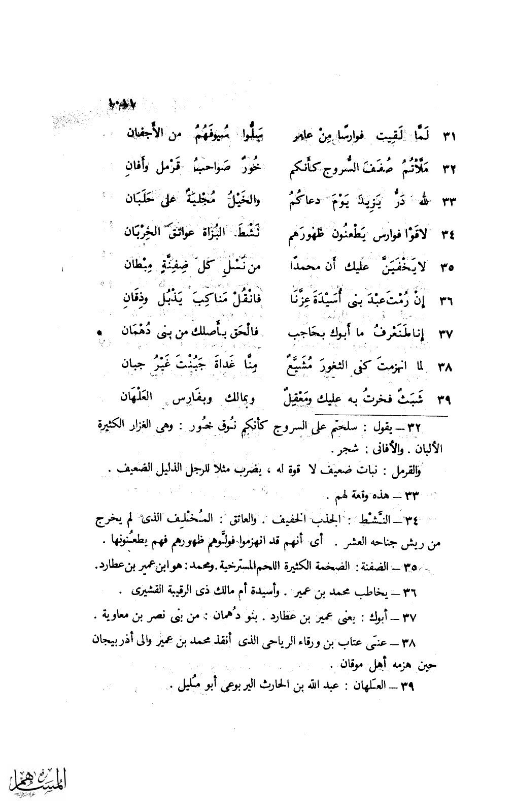 31 لمَّا ليقيت فوارسًا من عامر ... سلُّوا سيوفهم من الأجفان