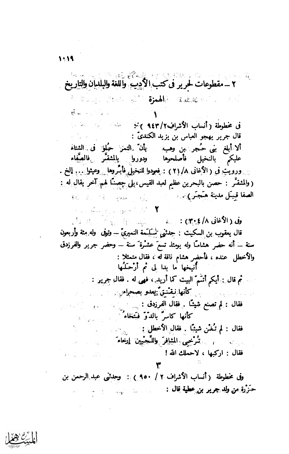 2 - مقطوعات لجرير في كتب الأدب واللغة والبلدان والتاريخ