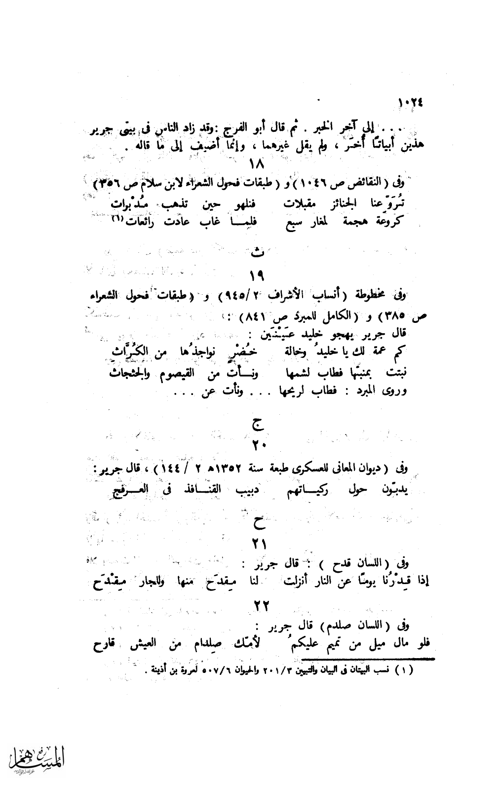 وفى (ديوان المعانى للعسكرى طبعة سنة 1352 هـ 2/ 144)، قال جرير: