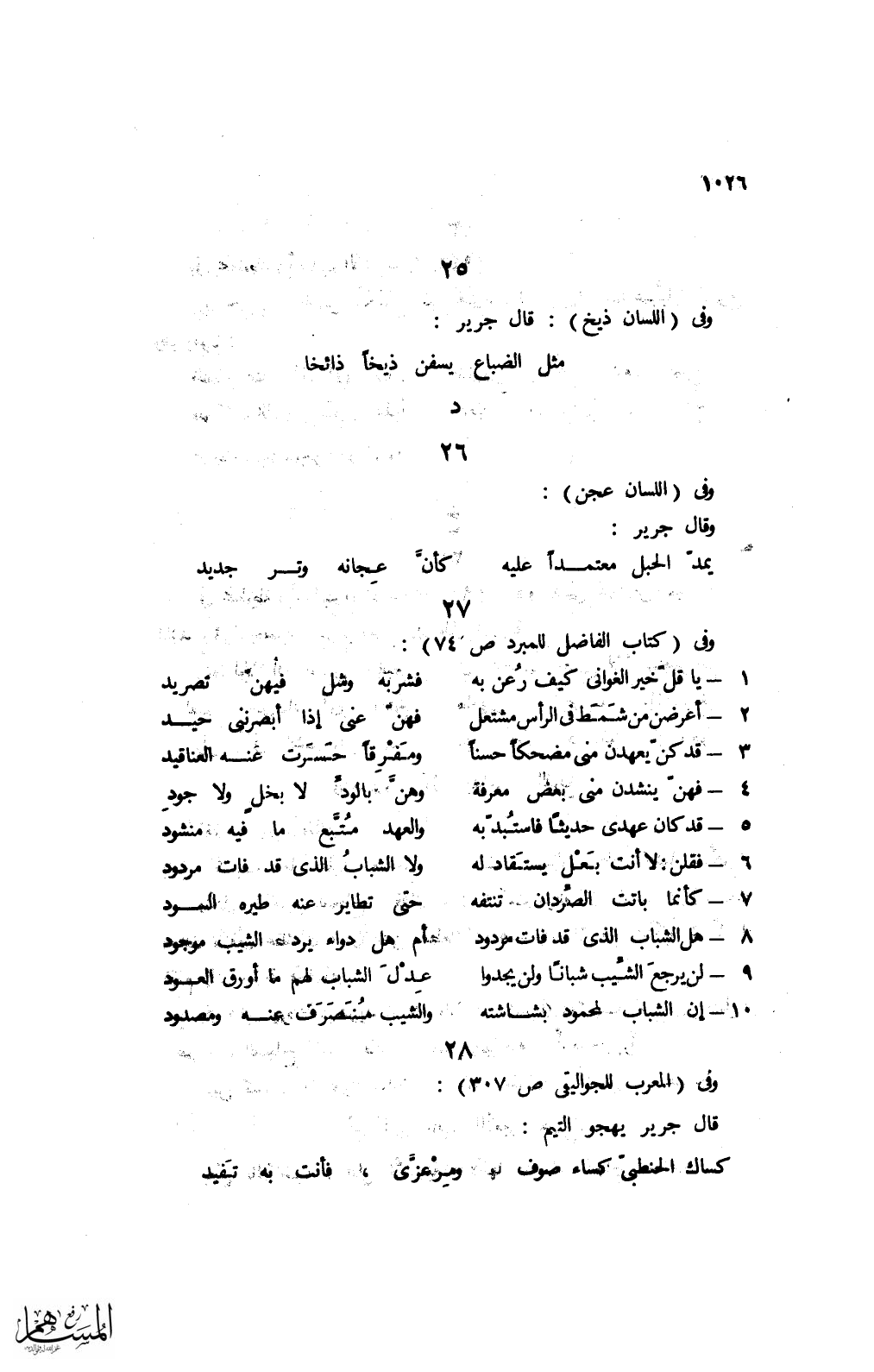 وفى (كتاب الفاضل للمبرد ص 74):