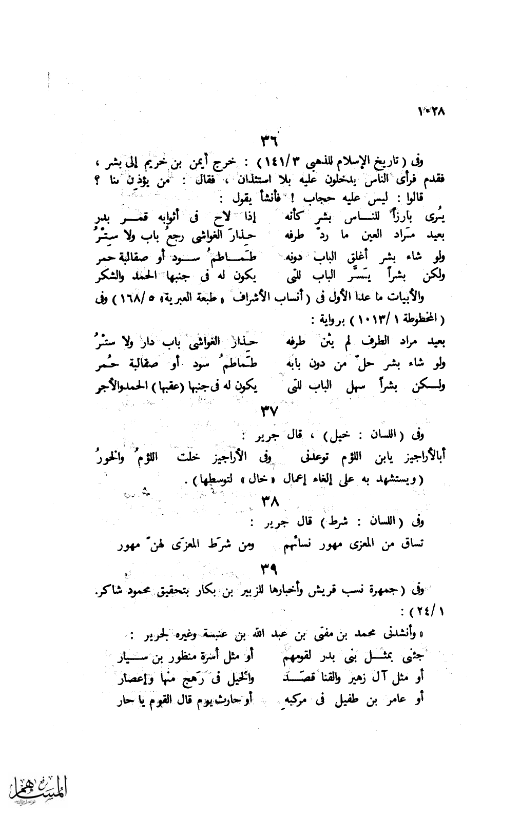 "وأنشدنى محمد بن مفتى بن عبد الله بن عنبة وغيره لجرير: