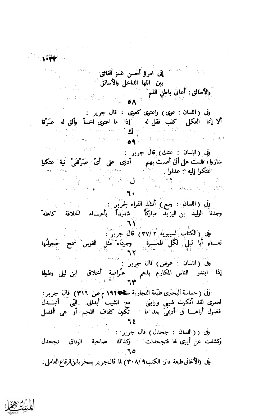 وفى (حماسة البحترى طبعة التجارية سنة 1925 م ص 316) قال جرير: