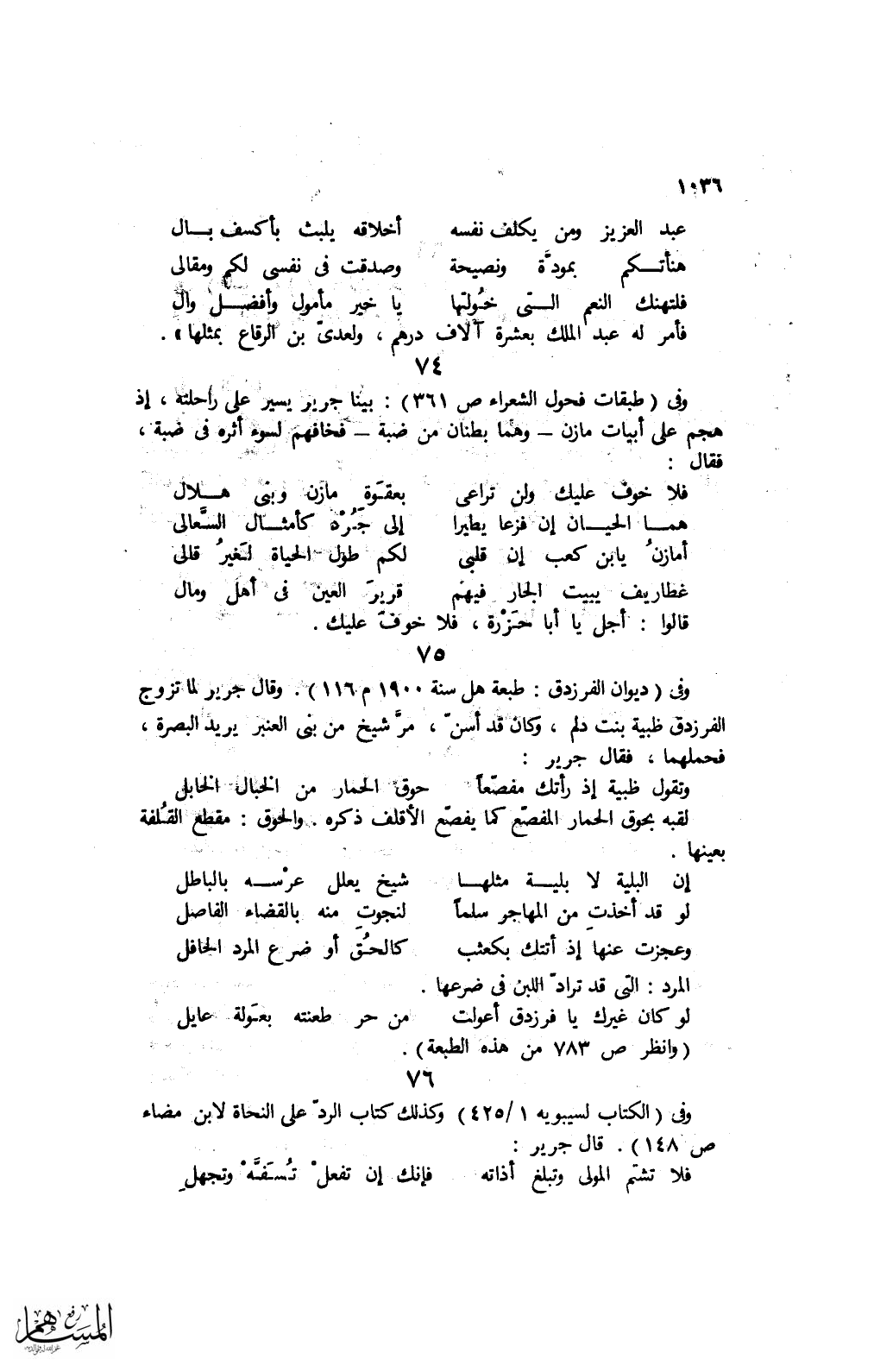 وفى (الكتاب لسيبويه 1/ 425) وكذلك كتاب الردّ على النحاة لابن مضاء ص 148). قال جرير: