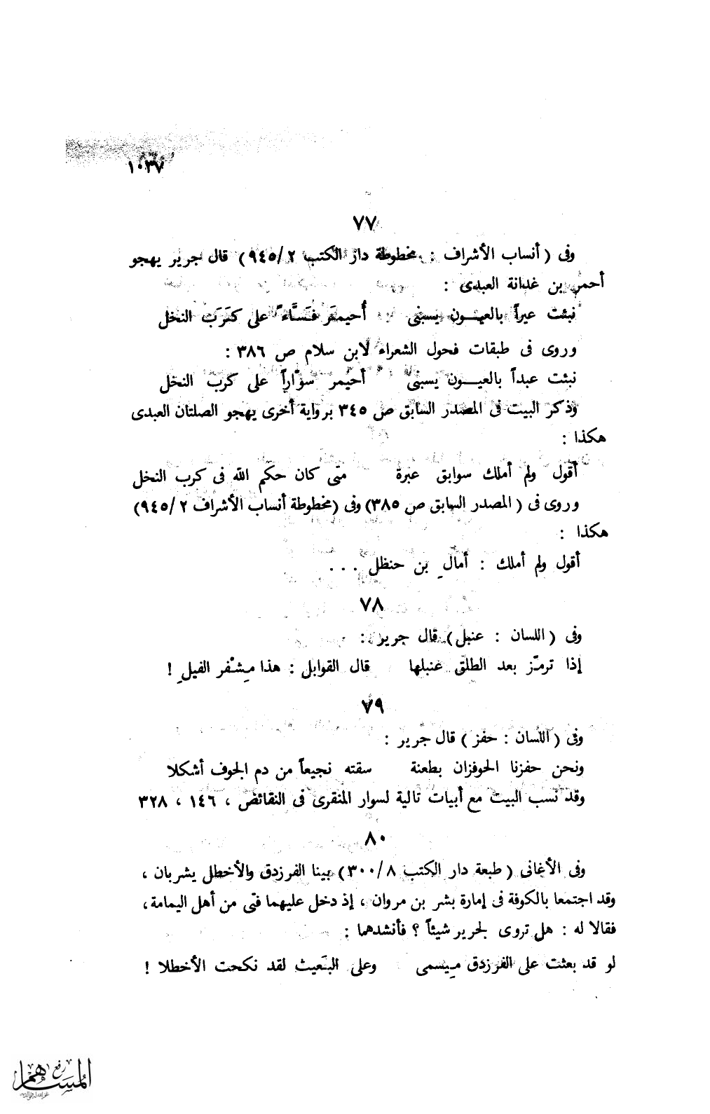 وفي (أنساب الأشراف: مخطوطة دار الكتب 2/ 945) قال جرير يهجو أحمى بن غدانة العبدى: