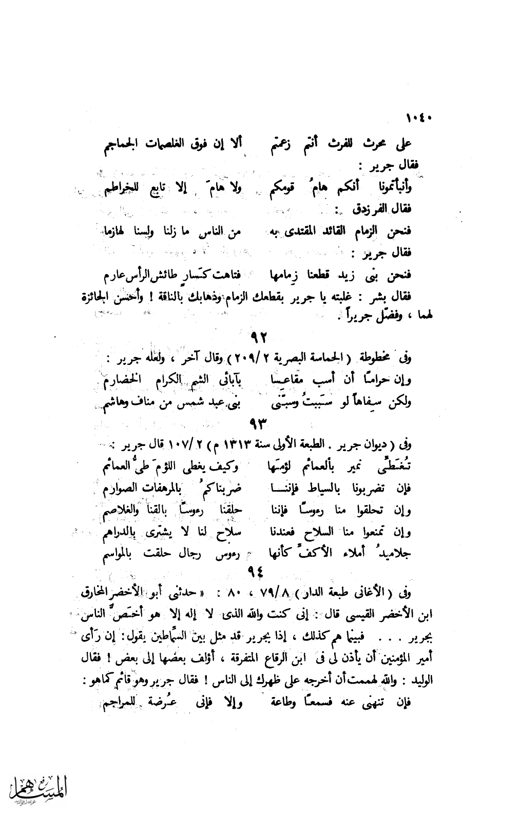 وفى (ديوان جرير. الطبعة الأولى سنة 1313 م) 2/ 107 قال جرير: