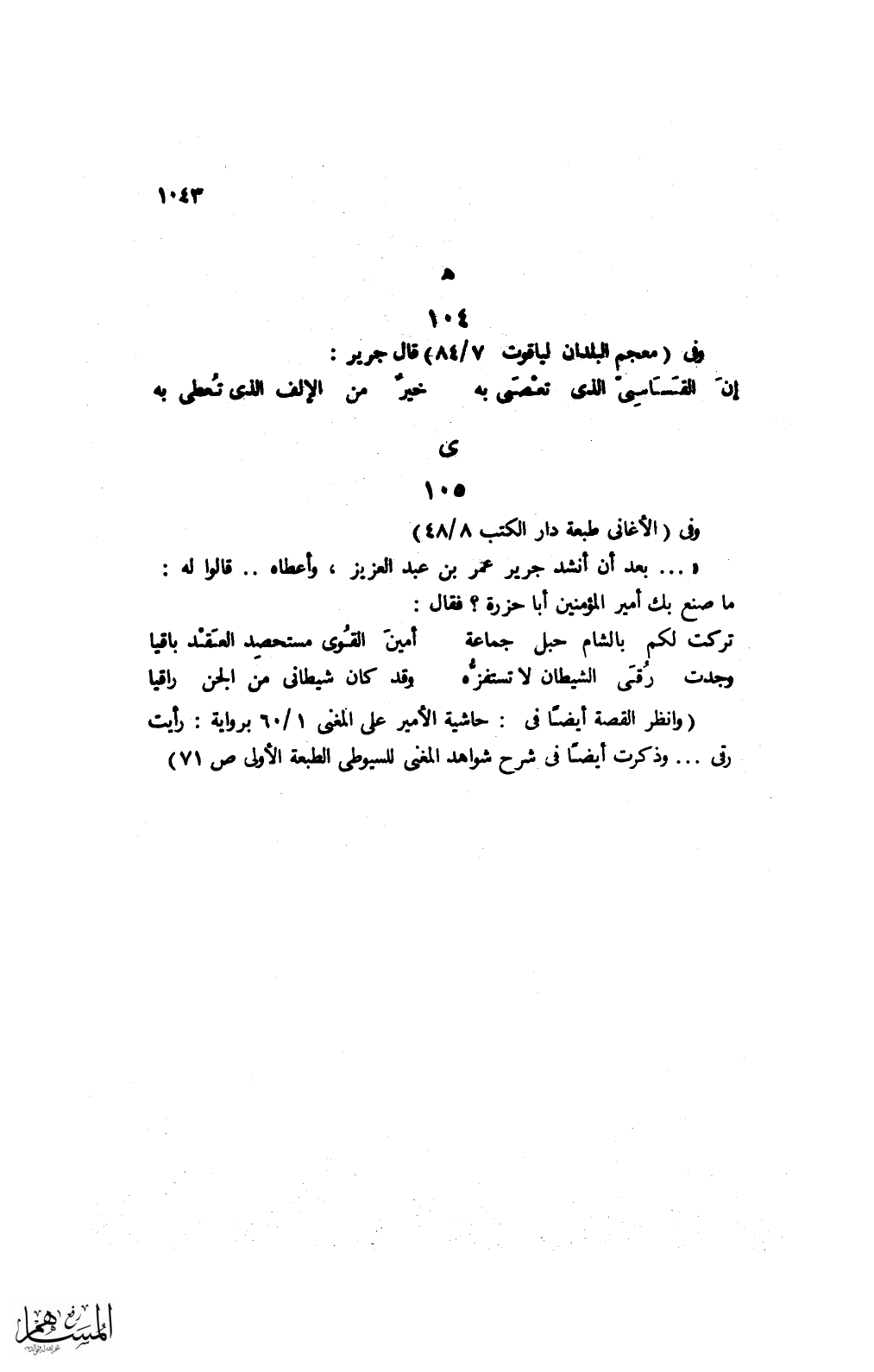 (وانظر القصة أيضًا فى: حاشية الأمير على المغنى 1/ 90 براوية: رأيت رقى ... وذكرت أيضًا فى شرح شواهد المغنى للسيوطى الطبعة الأولى ص 71)