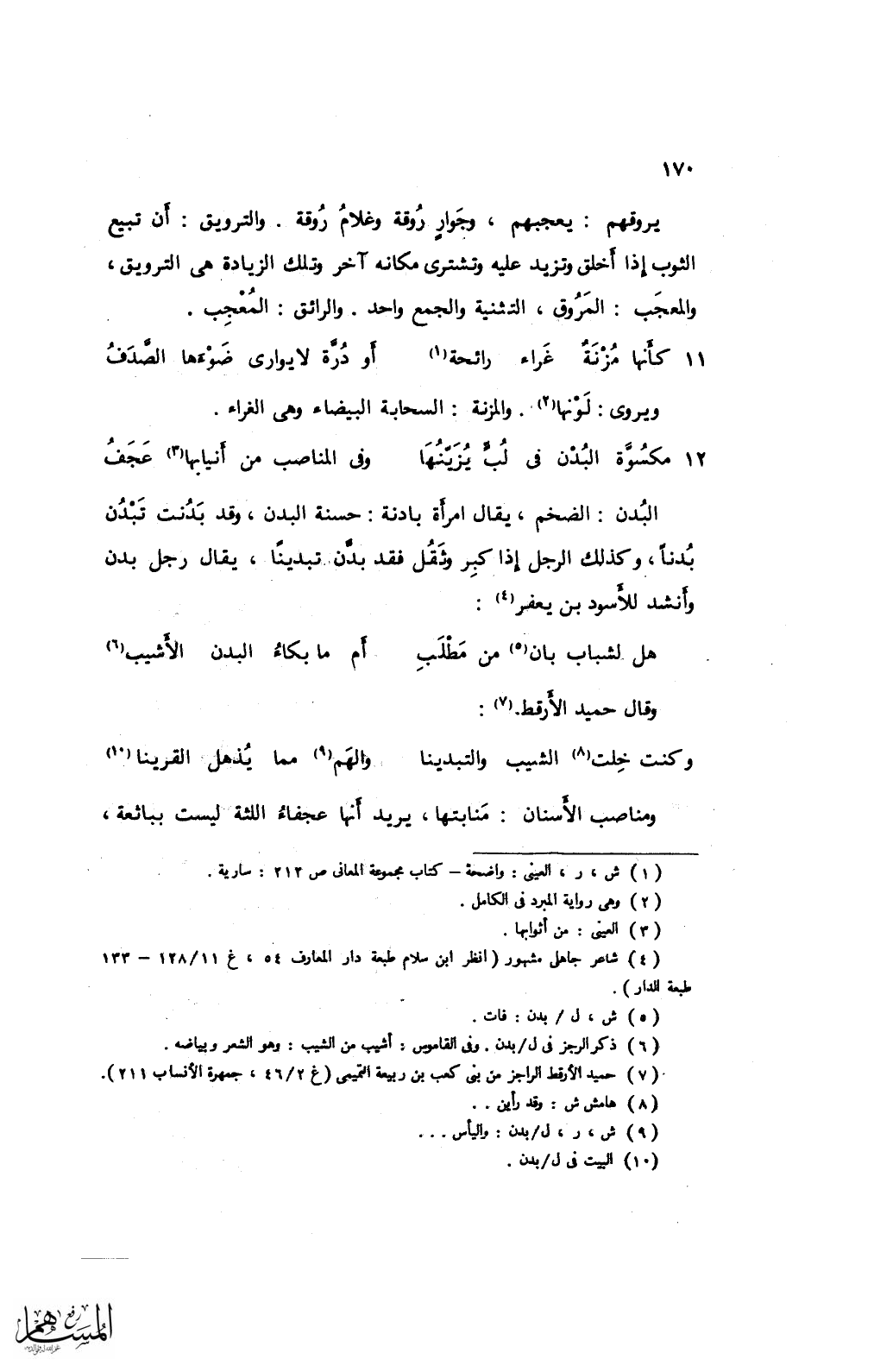 12 مكسَّوة البدن في لبٍّ يزيّنها ... وفي المناصب من أنيابها عجف