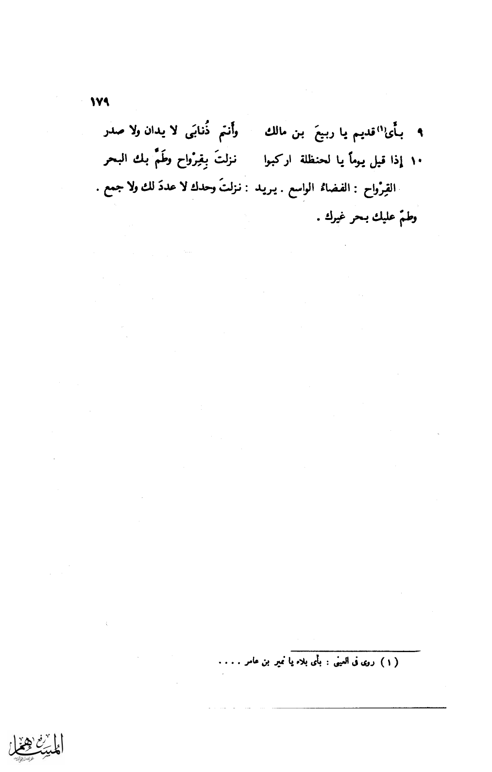 10 إذا قيل يومًا يا لحنظلة اركبوا ... نزلت بقرواح وطمَّ بك البحر