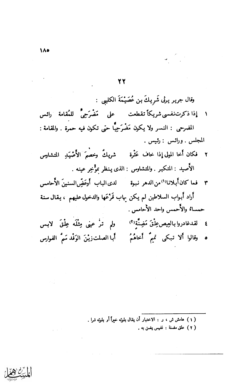 1 إذا ذكرت نفسي شريكًا تقطعت ... على مضرحيٍّ للمقامة رائس