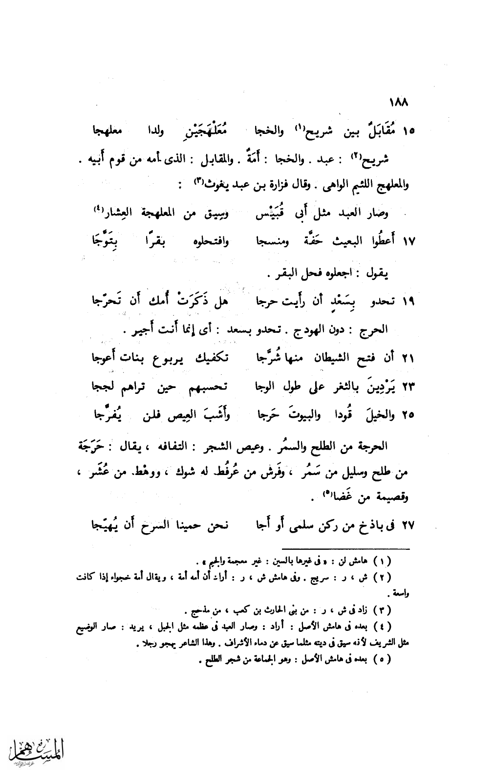 شريح: عبد. والخجا: أمةٌ. والمقابل: الذي أمه من قوم أبيه. والمعلهج اللئيم الواهي. وقال فزارة بن عبد يغوث: