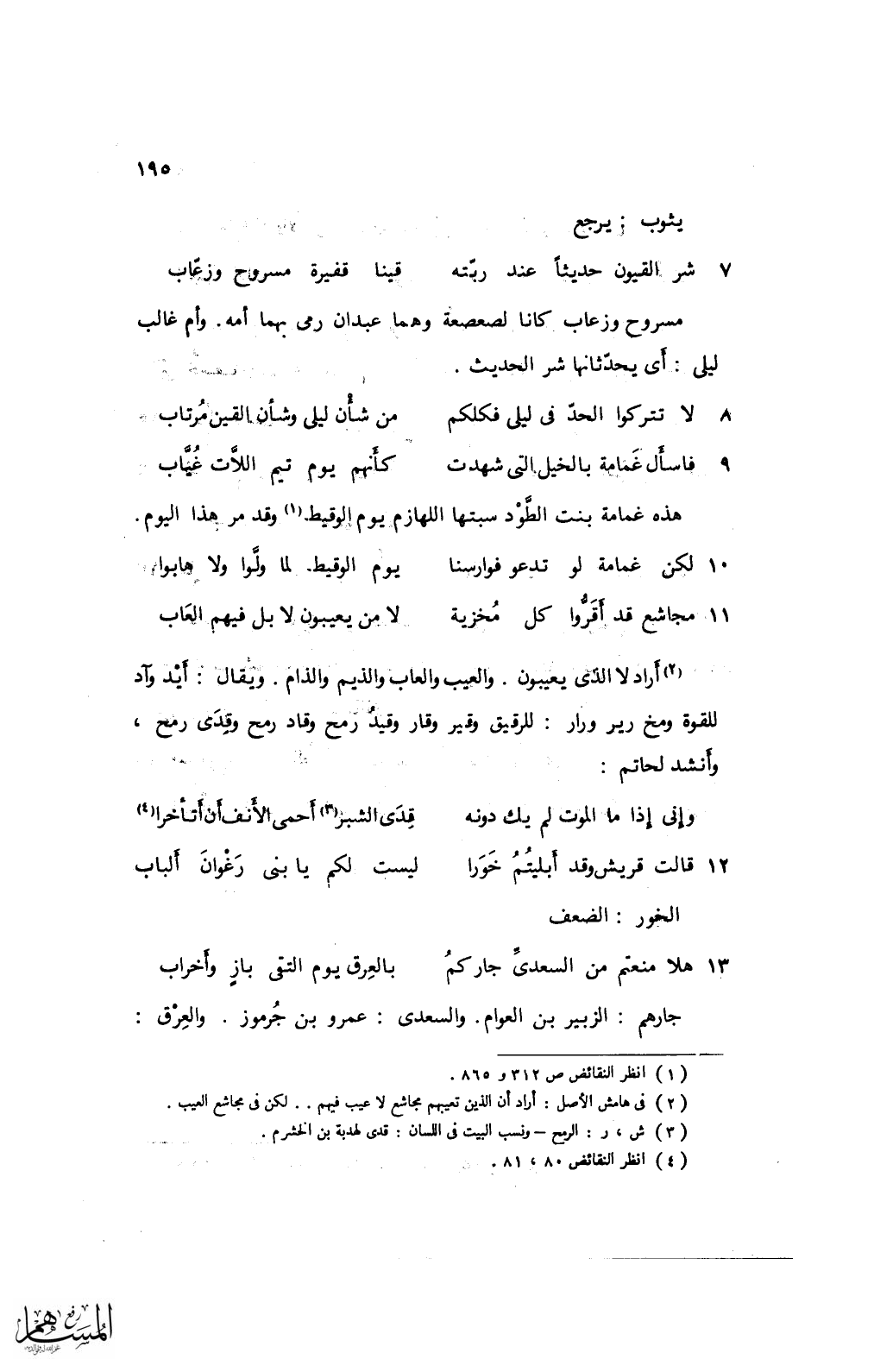 8 لا تتركوا الحدّ في ليلى فكلكم .. من شأن ليلى وشأن القين مرتاب