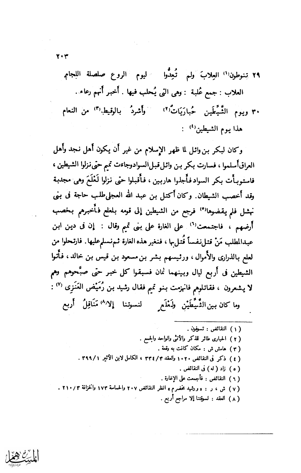 30 ويوم الشَّيِّطين حباريات ... وأشرد بالوقيط من النعام