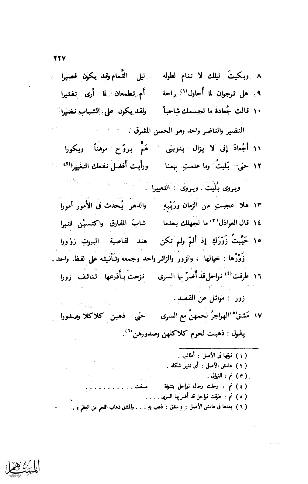 8 وبكيت ليلك لا تنام لطوله ... ليل التِّمام وقد يكون قصيرا