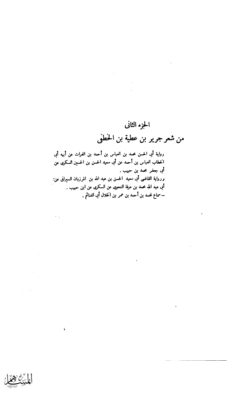 ورواية القاضي أبي سعيد الحسن بن عبد الله بن المرزبان السيرافي عن أبي عبد الله محمد بن عرفة النحوي عن السكري عن ابن حبيب.