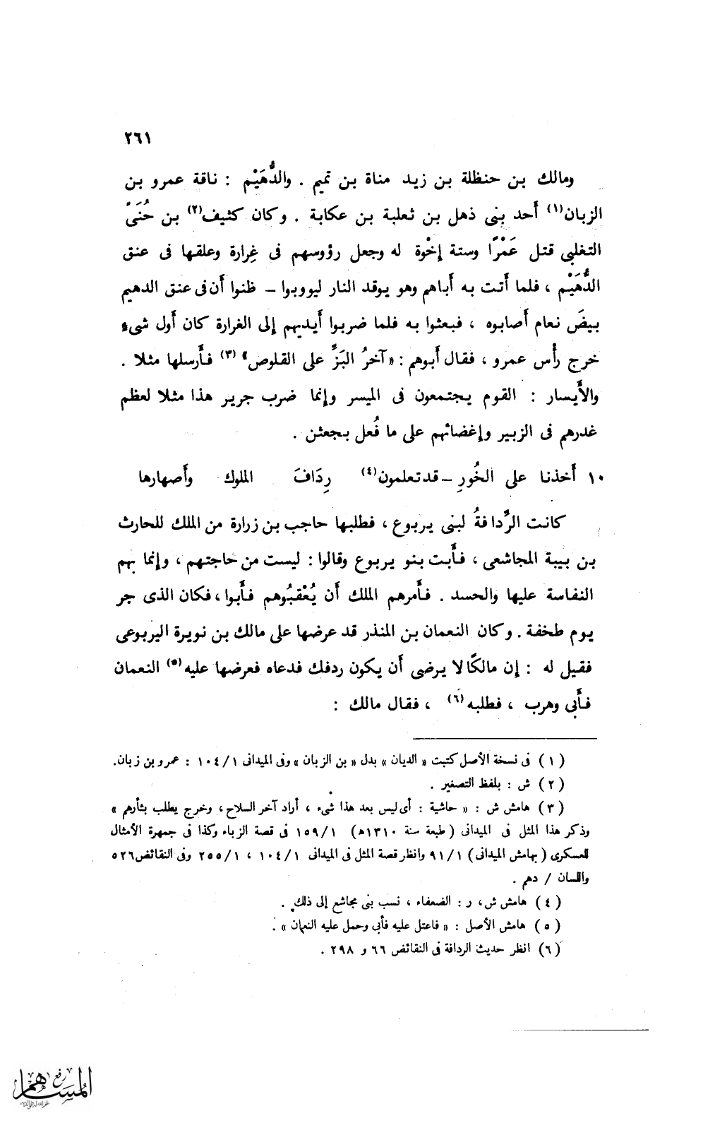 ومالك بن حنظلة بن زيد مناة بن تميم. والدهيم: ناقة عمرو بن الزبان أحد بني ذهل بن ثعلبة بن كعابة. وكان كثيف بن حنيّ التغلبي قتل عمرًا وستة إخوة له وجعل رؤوسهم في غرارة وعلقها في عنق الدهيم، فلما أتت به أباهم وهو يوقد النار ليووبوا - ظنوا أن في عنق الدهيم بيض نعام أصابوه، فبعثوا به فلما ضربوا أيديهم إلى الغرارة كان أول شيء خرج رأس عمرو، فقال أبوهم: "آخر البزِّ على القلوص" فأرسلها مثلًا. والأيسار: القوم يجتمعون في الميسر وإنما ضرب جرير هذا مثلًا لعظم غدرهم في الزبير وإغضائهم على ما فعل بجعثن.