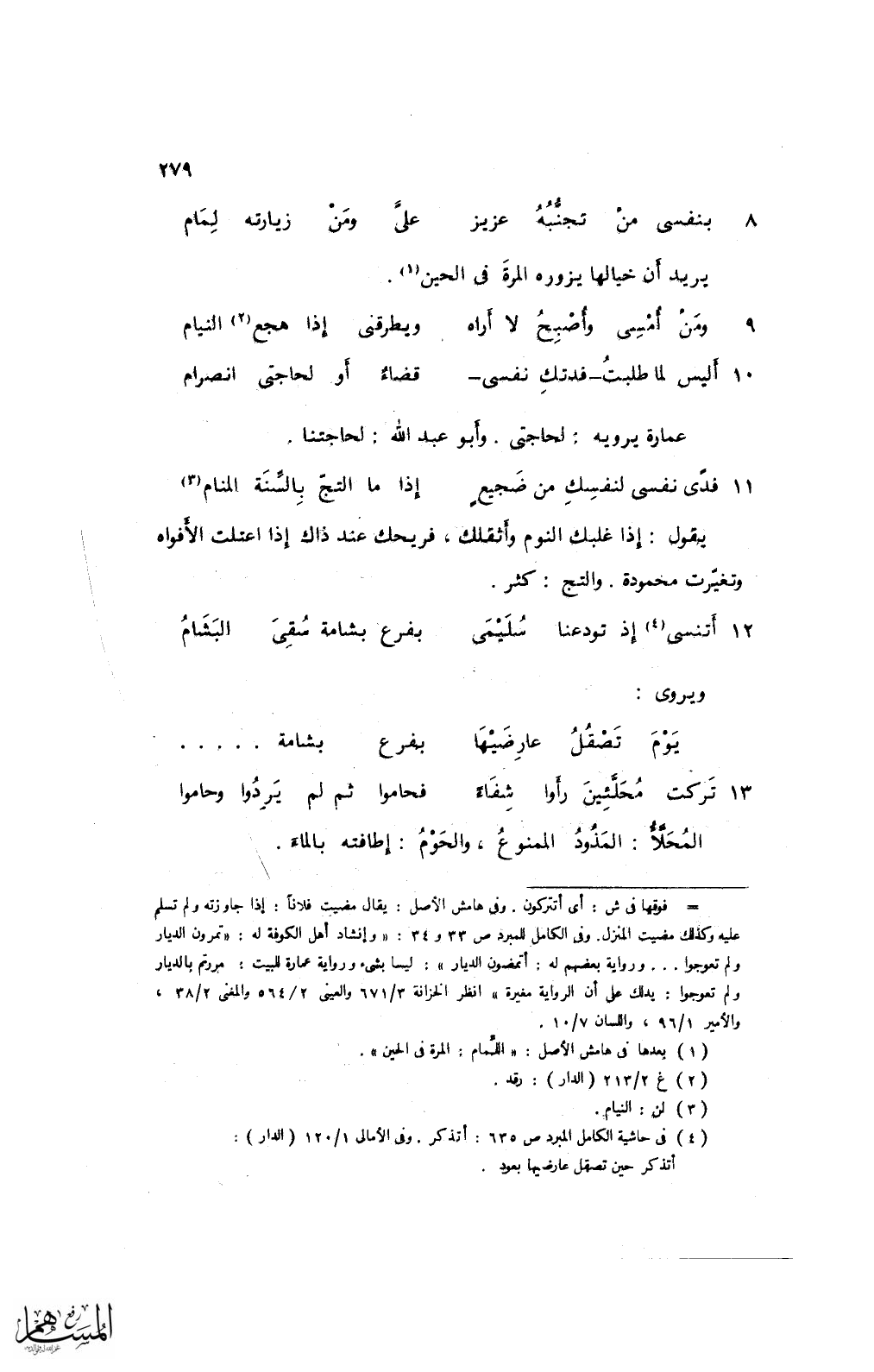13 تركت محلَّئين رأوا شفاءً ... فحاموا ثم لم يردوا وحاموا