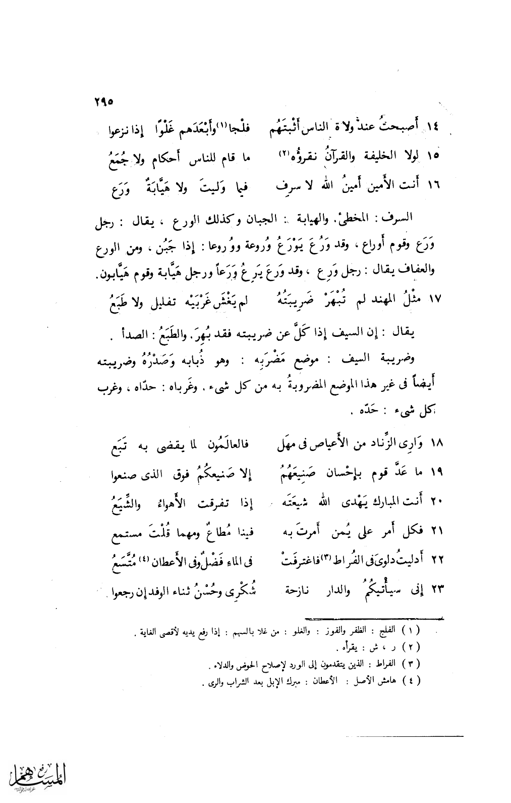 15 لولا الخليفة والقرآن نقرؤه ... ما قام الناس أحكام ولا جمع