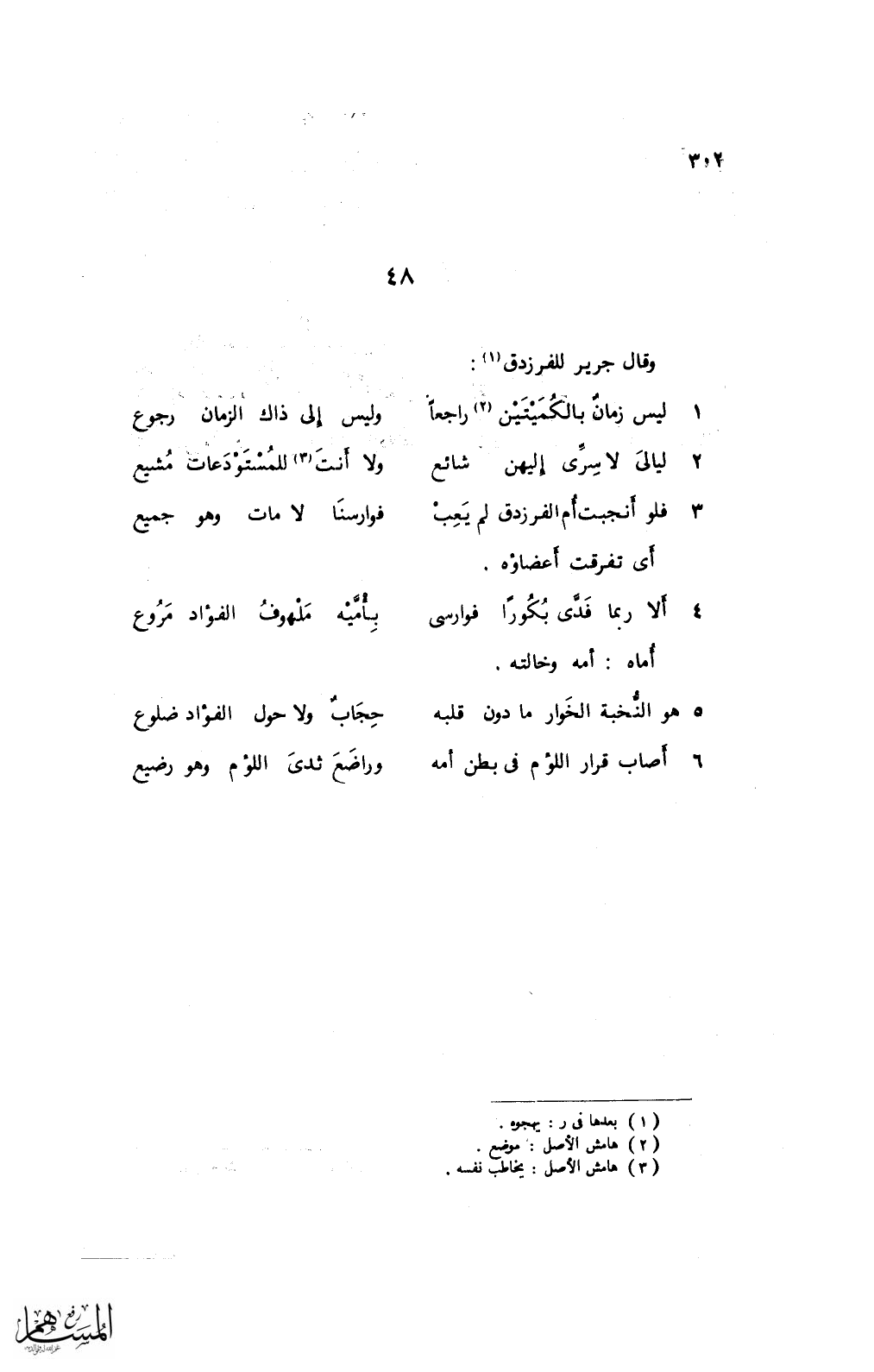 3 فلو أنجبت أم الفرزدق لم يعب ... فوارسنا لا مات ولا جميع