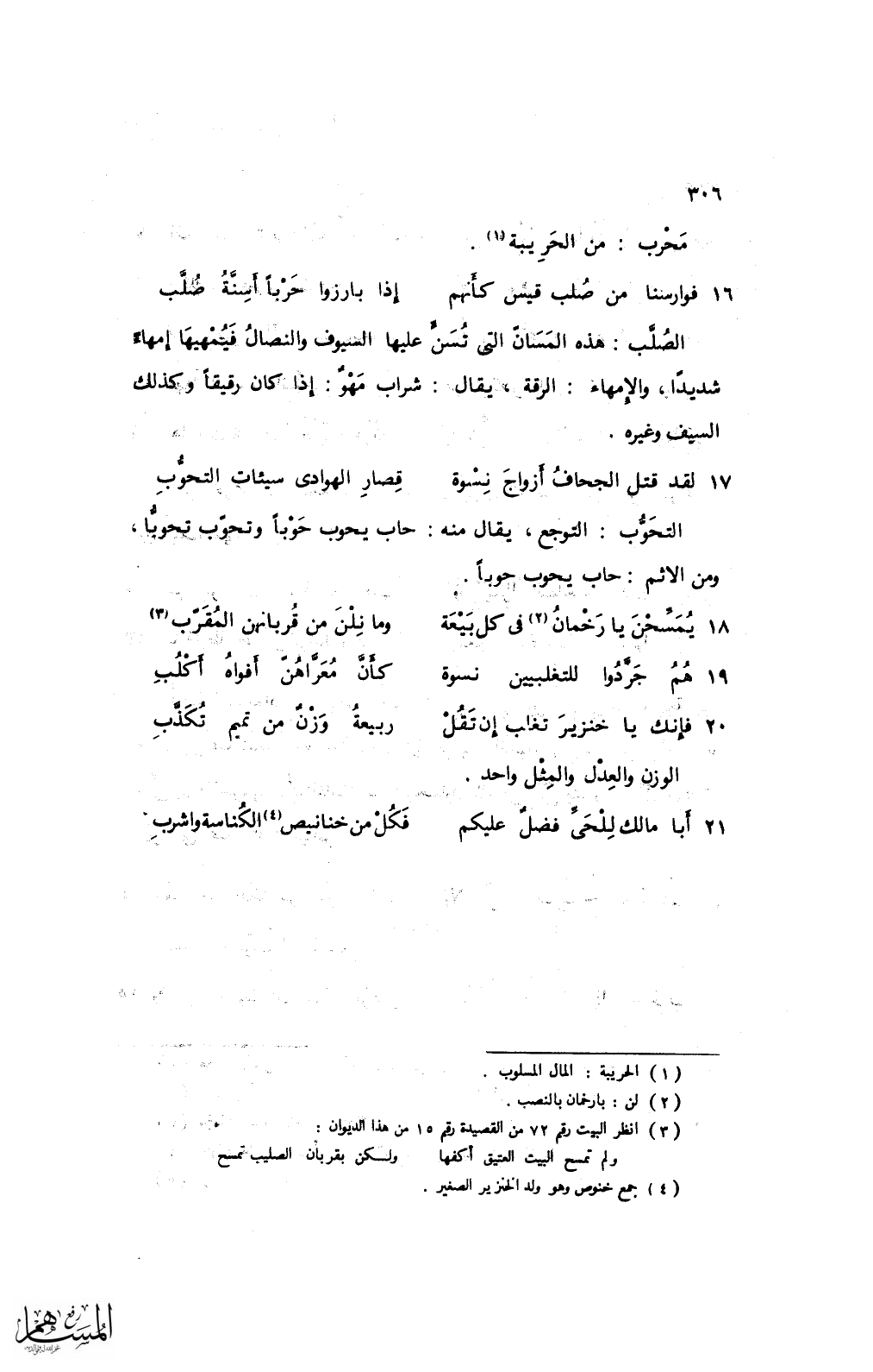 19 هم جرَّدوا للتغلبيين نسوة ... كأنَّ معرَّاهنّ أفواه أكلب