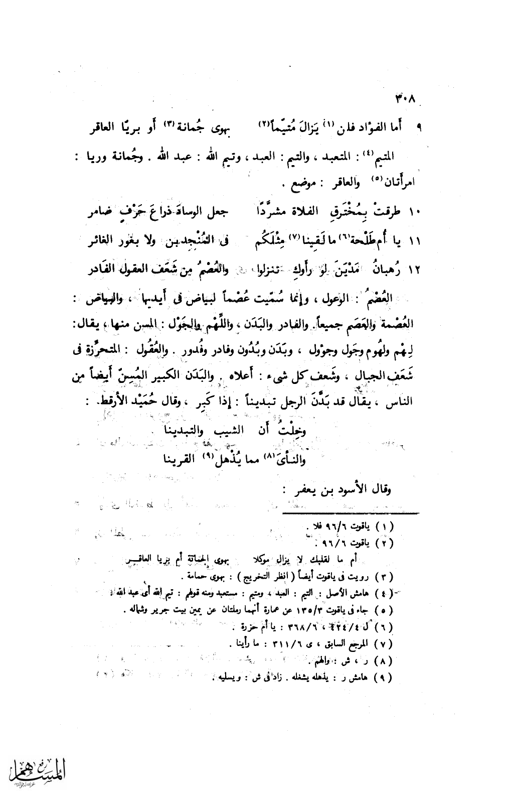 9 أما الفؤاد فلن يزال متيّمًا ... بهوى جمانة أو بريّا العاقر