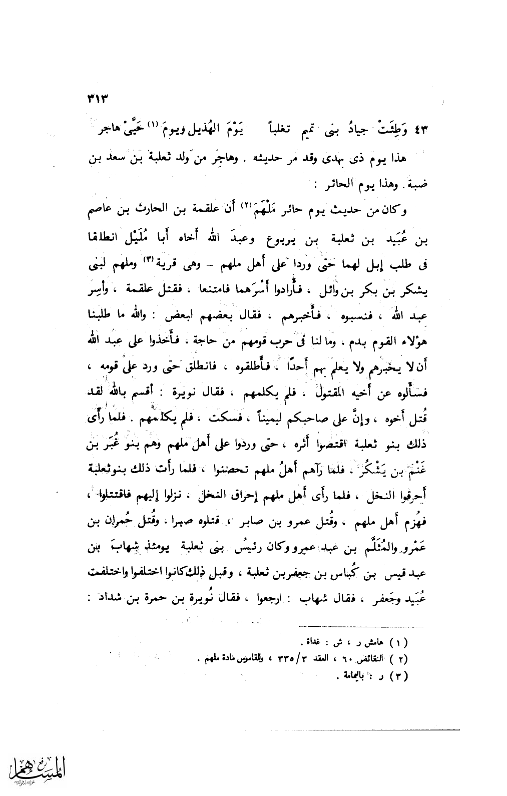 43 وطئت جياد بني تميم تغلبًا ... يوم الهذيل ويوم حيَّي هاجر