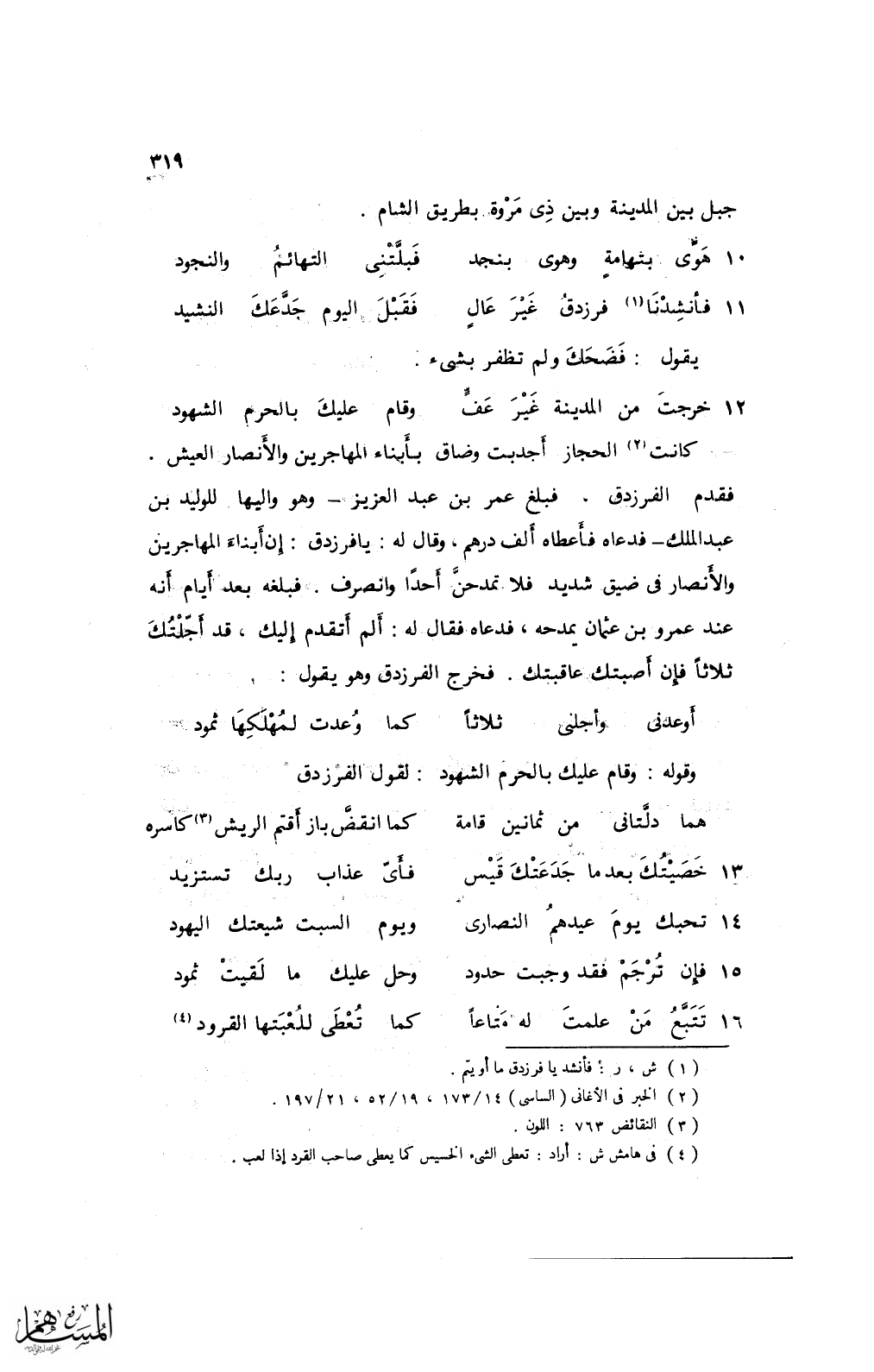 12 خرجت من المدينة غير عفٍّ ... وقام عليك بالحرم الشهود