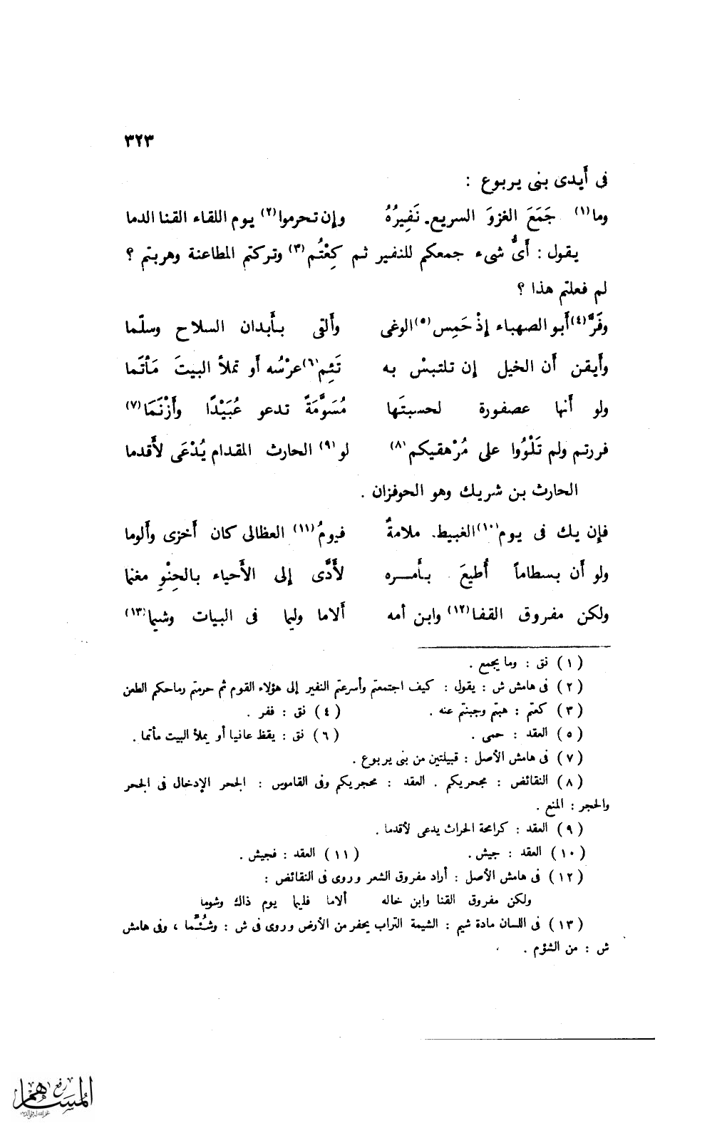 فررتم ولم تلووا على مرهقيكم ... لو الحارث المقدام يدعى لأقدما