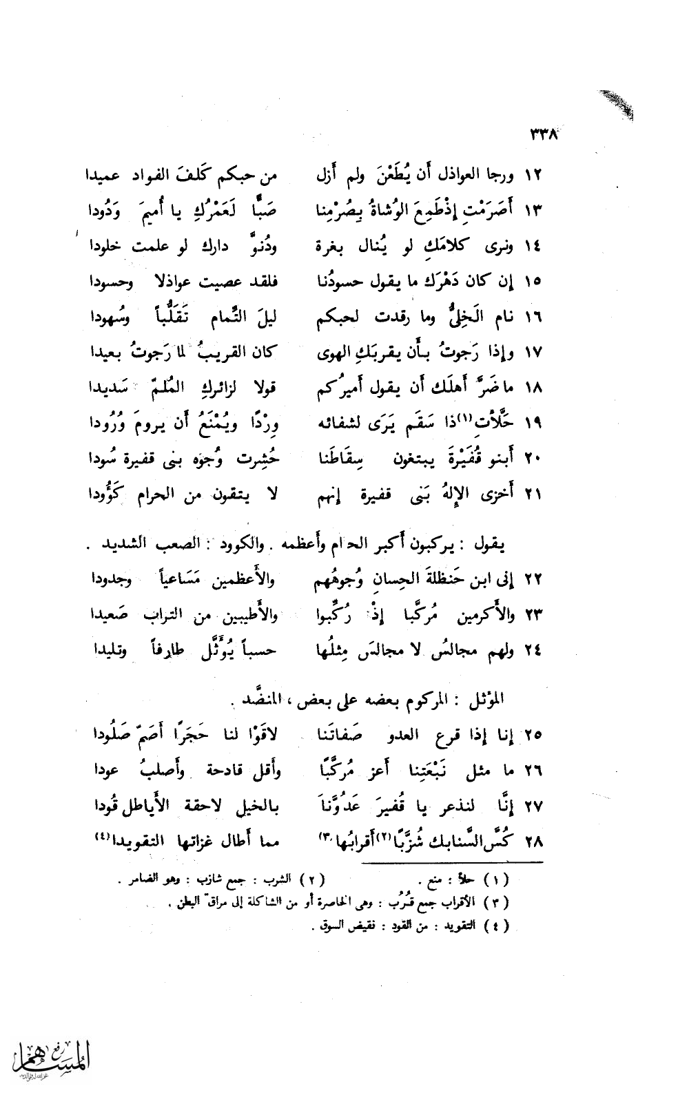 12 ورجا العواذل أن يطعن ولم أزل ... من حبكم كلف الفواد عميدا