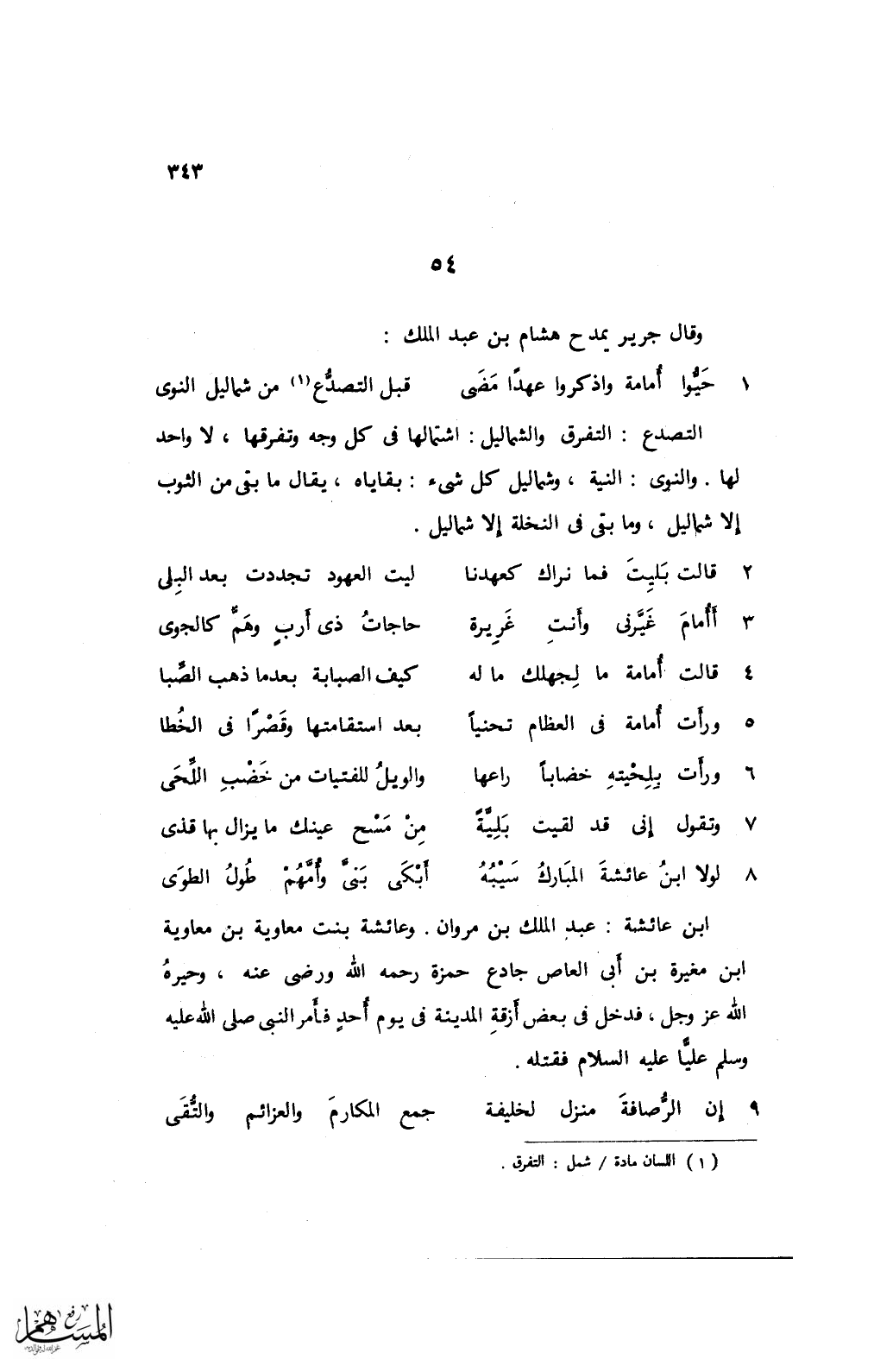 9 إن الرُّصافة منزل لخليفة ... جمع المكارم والعزائم والتُّقى