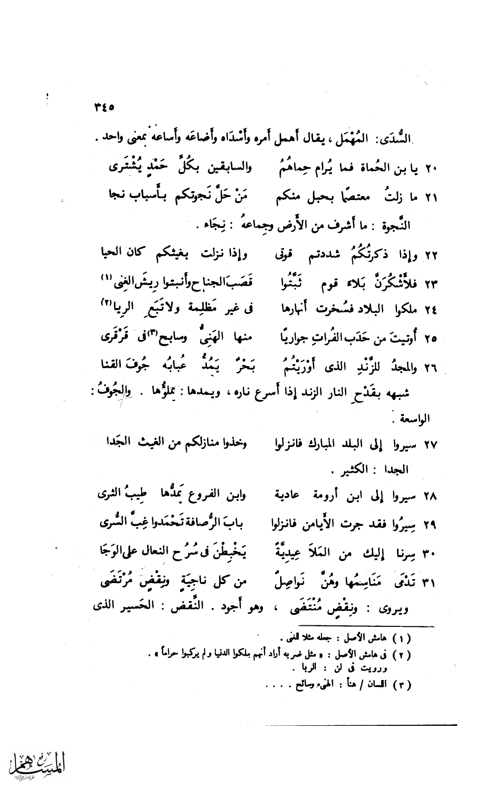 23 فلأشكرنَّ بلاء قوم ثبَّتوا ... قصب الجناح وأنبتوا ريش الغنى