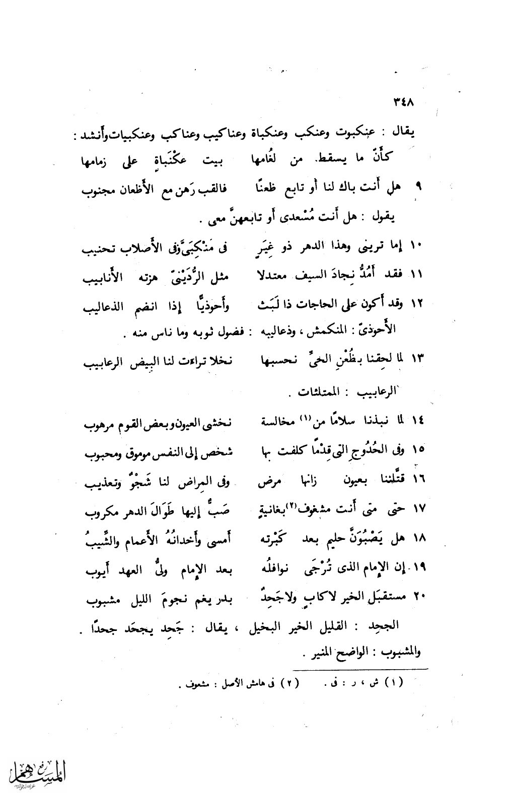 9 هل أنت باك لنا أو تابع ظعنًا ... فالقلب رهن مع الأظعان مجنوب
