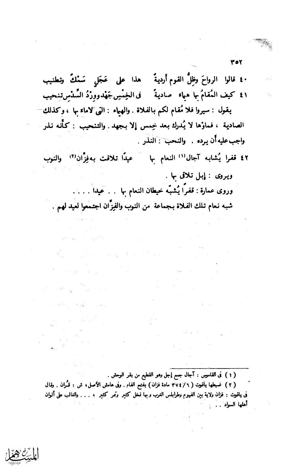 42 قفرا يشابه آجال النعام بها ... عيدًا تلاقت به فزَّان والنوب