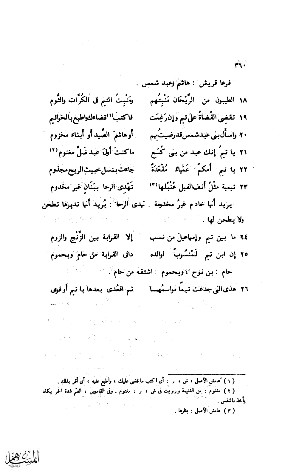 25 إن ابن تيم لمنسوب لوالده ... داني القرابة من حام ويحموم