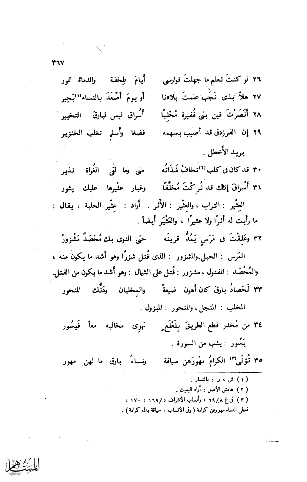 33 لحصاد بارق كان أهون ضيعة ... والمخلبان ودنُّك المنحور