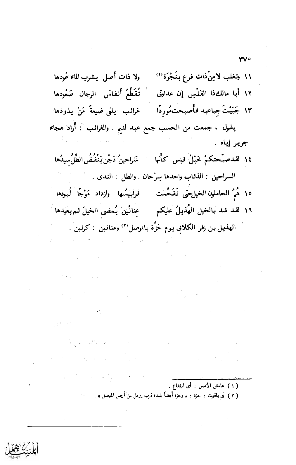 الهذيل بن زفر الكلابي يوم حزَّة بالموصل وعنانين: كرتين.
