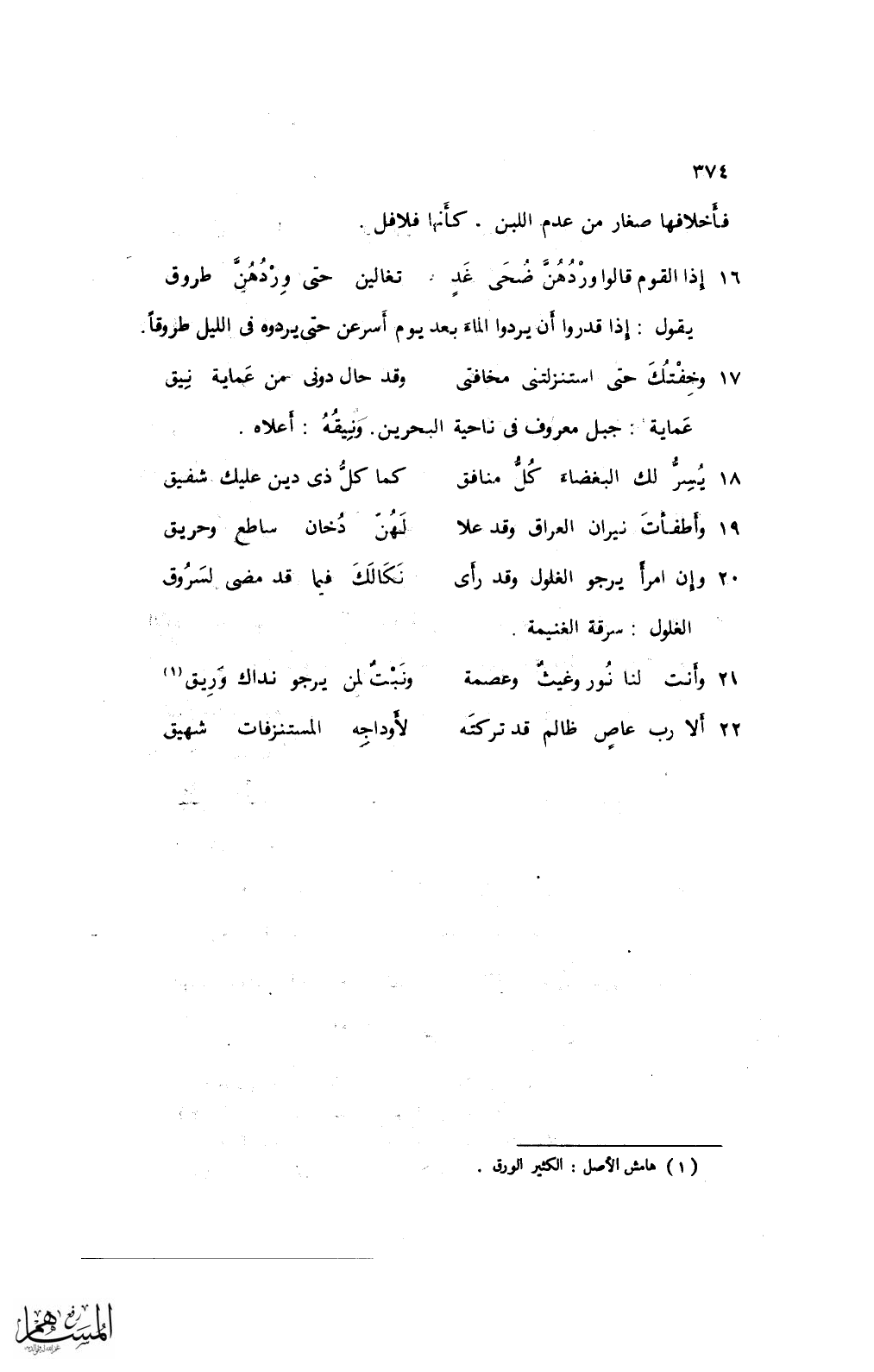 22 ألا رب عاصٍ ظالم قد تركته ... لأوداجه المستنزفات شهيق