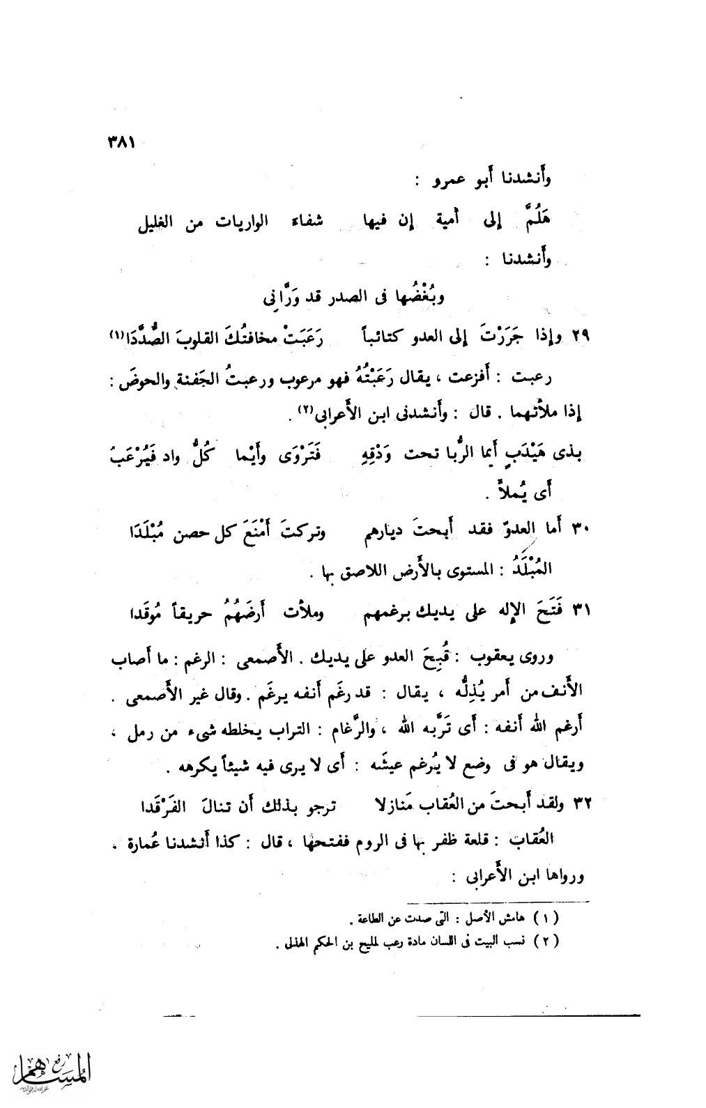 32 ولقد أبحت من العقاب منازلا ... ترجو بذلك أن تنال الفرقدا