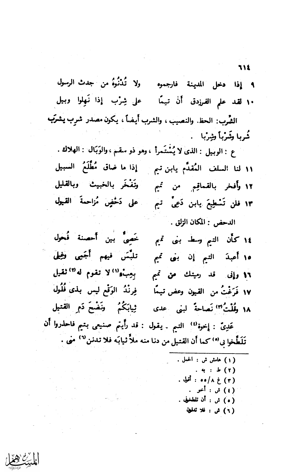 10 لقد علم الفرزدق أنّ تيمًا ... على شربٍ إذا نهلوا وبيل